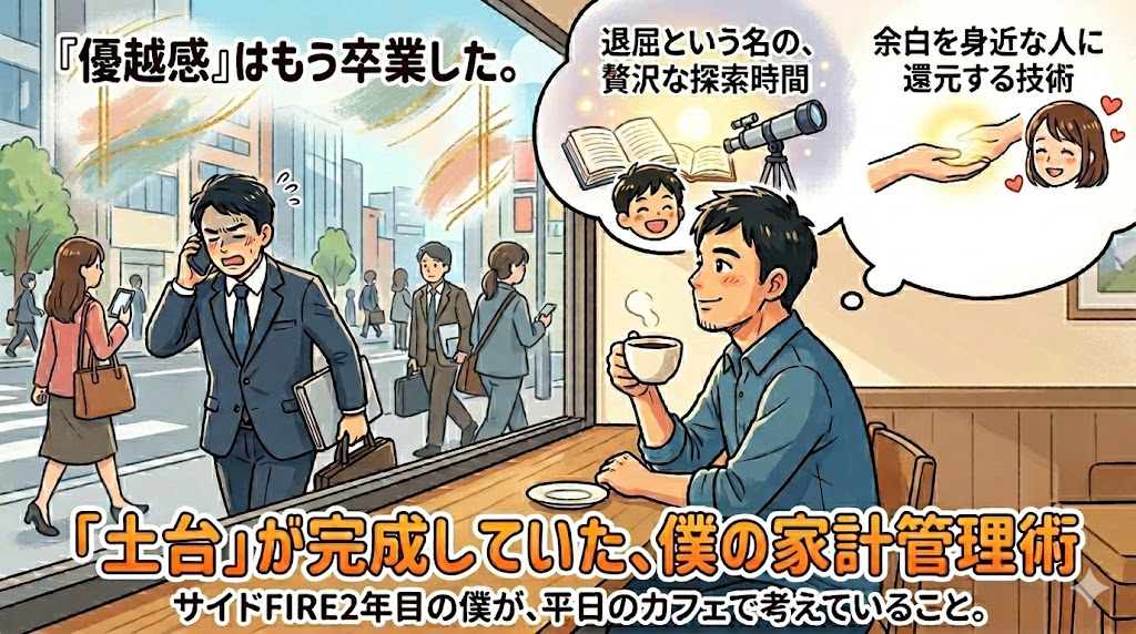 サイドFIREに憧れる人の話を聞くと、よく「平日の昼間から、忙しそうに働く人を見下ろして優越感に浸りたい」なんて言葉を耳にします。正直に白状すれば、僕もこの生活を始めて1年目くらいまでは、そんな「ちょっと嫌な自分」が顔を出すこともありました。