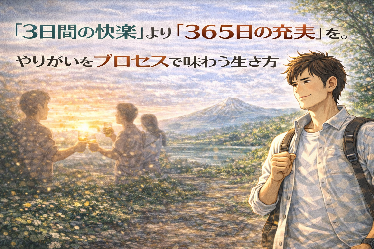大きな目標を達成した瞬間は最高にハイになりますが、4日目にはまた、淡々とした日常が始まります。もし「結果」だけをやりがいにしていたら、そのゴールに辿り着くまでの数ヶ月、数年という膨大な時間は、ただの「我慢の時間」になってしまいます。