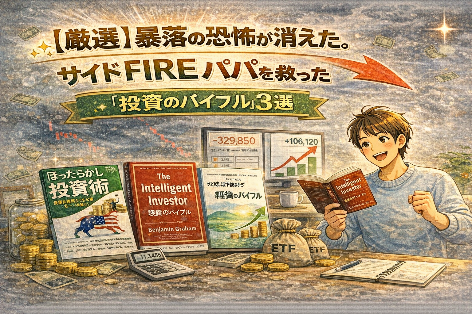 今回は、私が何度も読み返し、そのたびに「大丈夫だ、計画通りだ」と心を救われた3冊のバイブルを厳選して紹介します。この3冊との出会いがなければ、私は今の自由な生活を手に入れる前に、恐怖に負けて投資を辞めていたかもしれません。