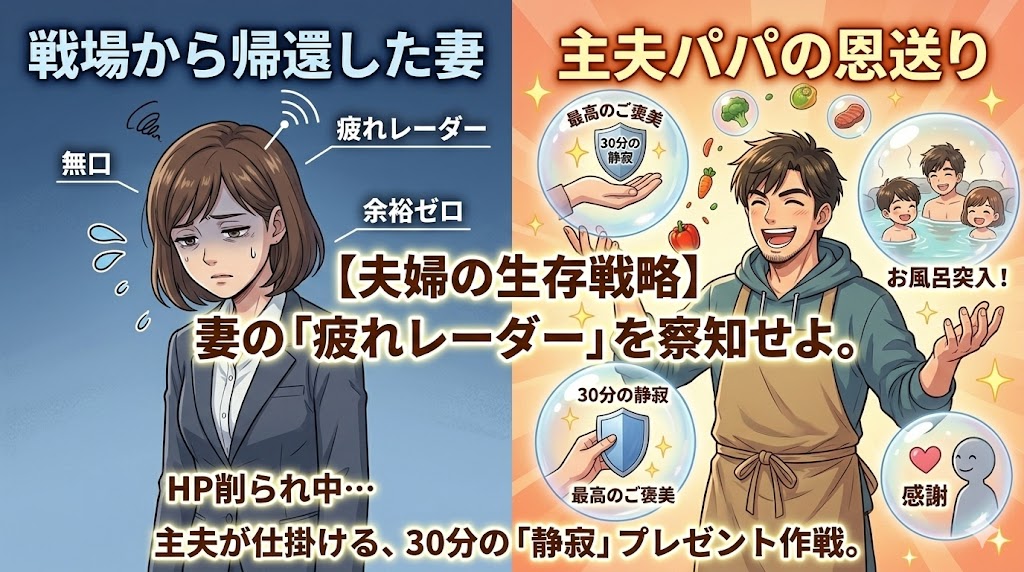 【夫婦の生存戦略】妻の「疲れレーダー」を察知せよ。主夫が仕掛ける、30分の「静寂(しじま)」プレゼント作戦。