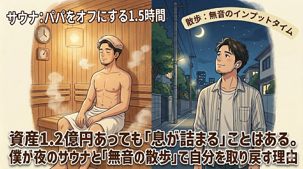 会社員時代、あれほど刺激的な遊びや贅沢を求めていたのに、今の僕が一番大切にしているのは、サウナや散歩といった、1000円以下で手に入る「静寂」でした。