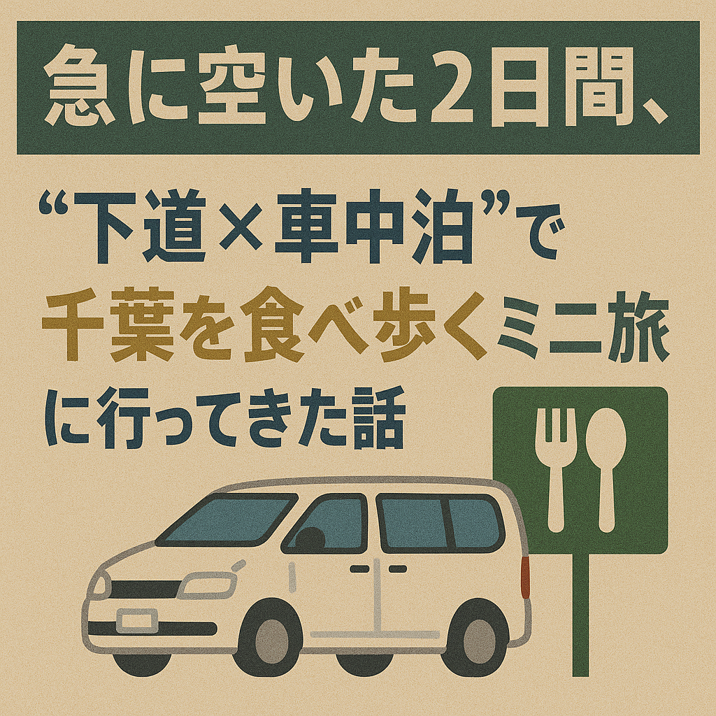ふいに空いた2日を、**下道×車中泊×温泉×爆食**でぎゅっと詰めたら、最高に気持ちよく疲れて、ちゃんと満たされました。直前の飛行機で遠くへ飛ぶのも良いけれど、**近場でも“体験の密度”は作れる**。帰宅してからは食事と睡眠を少し整えて、生活をまた通常運転へ。こういうミニ旅を、年に数回仕込んでいきたいです。