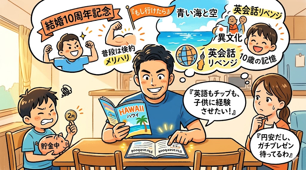 それは、結婚10周年の節目に家族でハワイに行けるのかどうか……!
